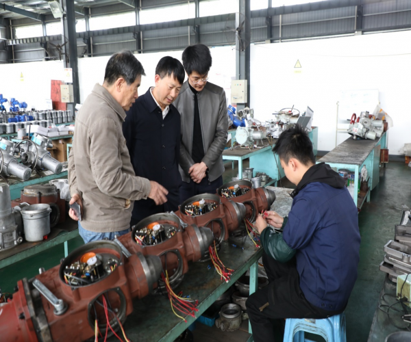 2021年4月13日,浙江省浦江縣人大常委會副主任于新宣、人大常委會教科文衛工委主任方自守、人大常委會財經工委主任鄭秉剛、浦江縣巖頭鎮黨委書記吳紅青、浦江縣工商聯主席朱有許、浦江縣黃宅鎮黨委副書記張林安等一行9人,作為黃山良業智能控制股份有限公司終身名譽董事長項美根先生家鄉——浦江縣的領導,來黃山良業公司看望民營企業家項美根先生,并親臨生產現場視察工廠,隨后,領導一行就關心的問題進行了詢問,并與公司負責人進行了座談交流,對公司的生產經營給予了充分的肯定。同時,浦江縣政府領導就良業公司未來的發展,提出了寶貴意見和建議,希望良業公司壯大銷售團隊,加大科技投入,借助于新三版掛牌上市平臺“招女婿”,在現有模式上進行不斷突破,把黃山良業打造成為全國閥門電裝一流企業。