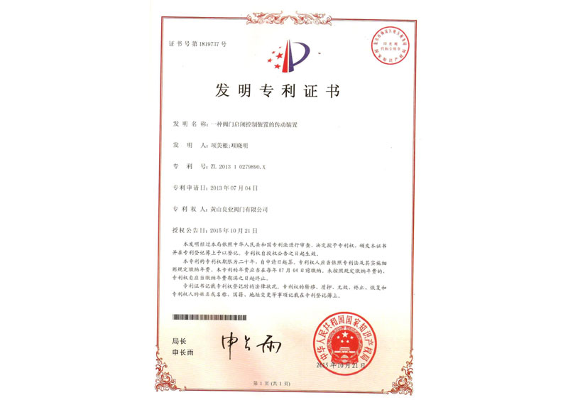 一種閥門電動裝置專利證書